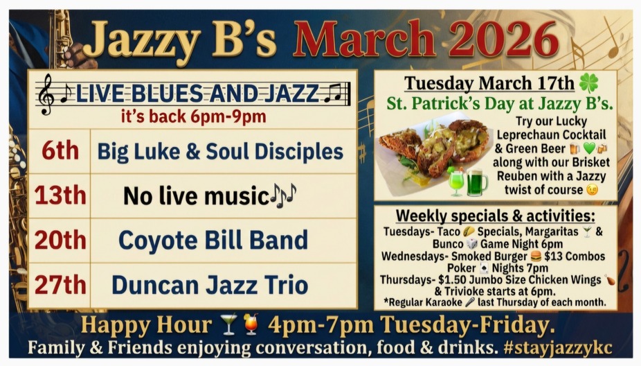 Jazzy B’s – March 2026 Lineup!